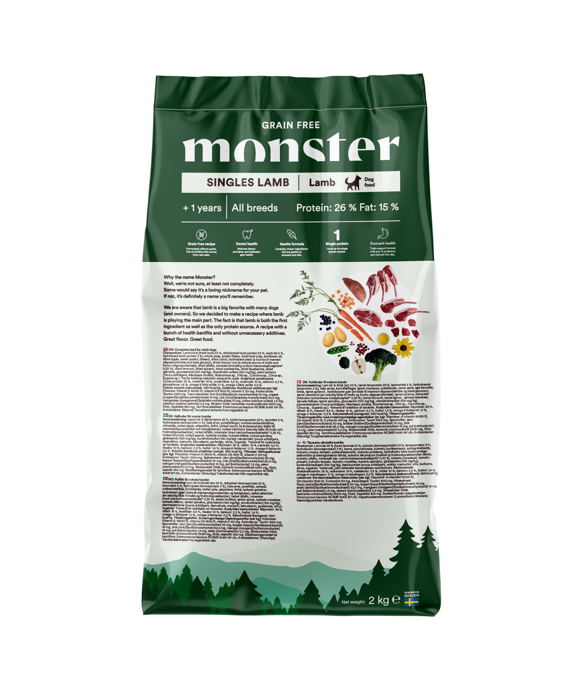 Við vitum að lamb er í miklu uppáhaldi hjá mörgum hundum (og eigendum). Þess vegna ákváðum við að útbúa uppskrift þar sem lambið leikur aðalhlutverkið. Staðreyndin er sú að lamb er bæði fyrsta innihaldsefnið og jafnframt eini próteingjafinn. Uppskrift með marga heilsufarslega kosti og án óþarfa aukaefna. Frábært bragð. Frábært fóður.