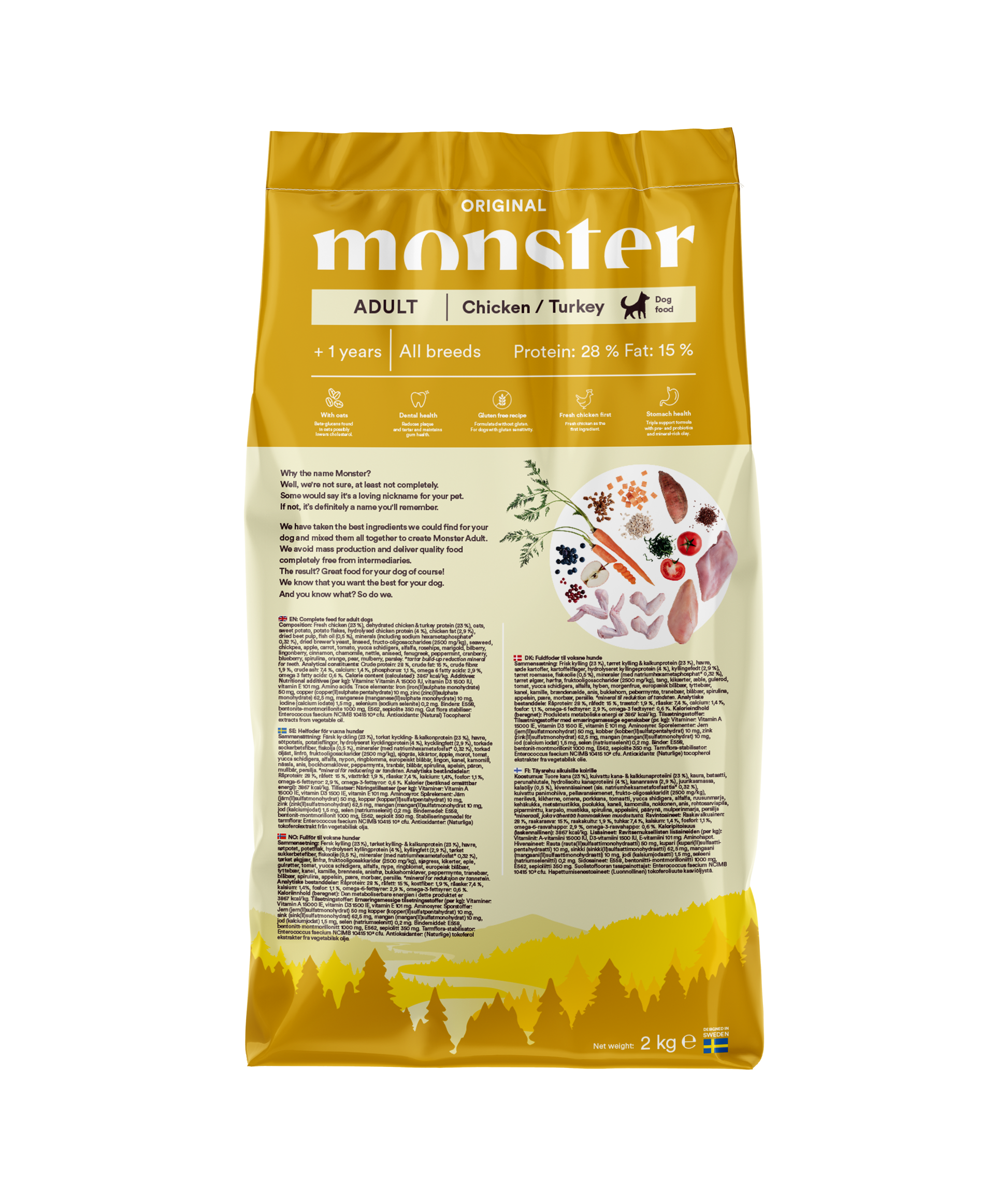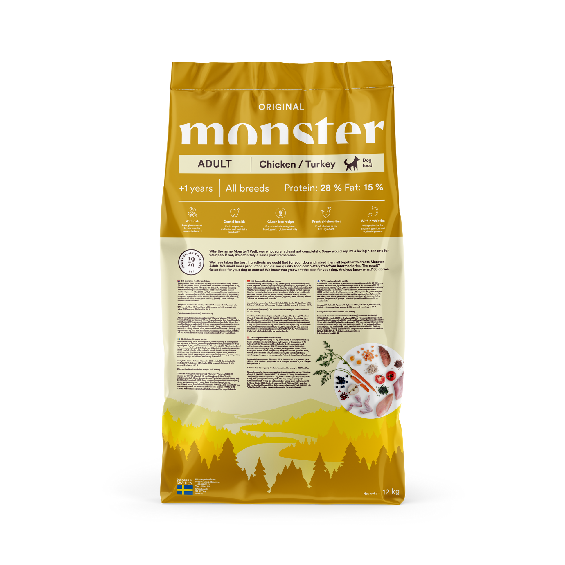 Við höfum tekið bestu hráefnin sem við fundum fyrir hundinn þinn og blandað þeim öllum saman til að skapa Monster Original. Við forðumst fjöldaframleiðslu og afhendum gæðafóður alveg án milliliða. Útkoman? Frábært fóður fyrir hundinn þinn, auðvitað! Við vitum að þú vilt það besta fyrir hundinn þinn. Og veistu hvað? Það viljum við líka.