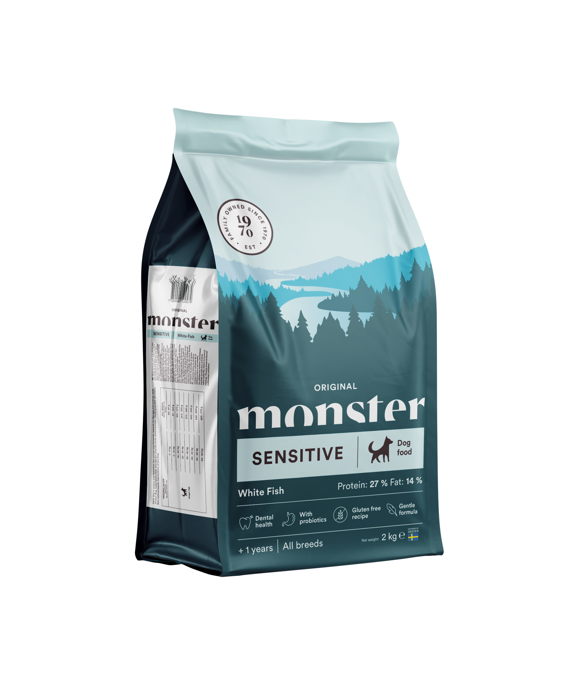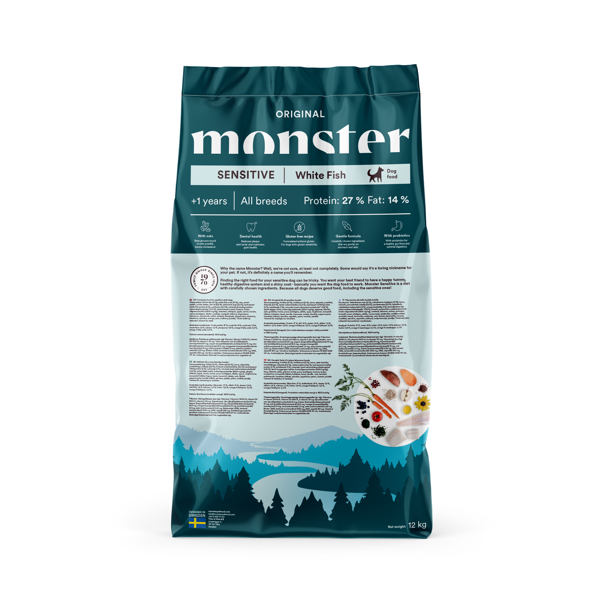 Að finna rétta fóðrið fyrir viðkvæman hund getur verið snúið. Þú vilt að besti vinur þinn sé með hamingjusaman maga, heilbrigða meltingu og gljáandi feld – í stuttu máli: þú vilt að fóðrið virki. Monster Sensitive er fæði með vandlega völdum innihaldsefnum. Því allir hundar eiga skilið gott fóður – líka þeir viðkvæmu!
